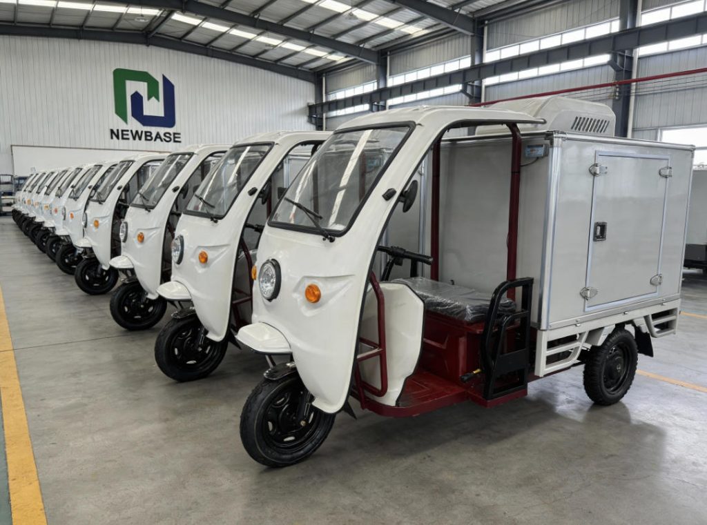 Zhengzhou NEWBASE Auto Electronics Co, Ltd dengan bangga mempersembahkan Roda Tiga Berpendingin Listrik yang mutakhir, perpaduan sempurna antara tuntutan praktis logistik modern dan konsep luhur perlindungan lingkungan.